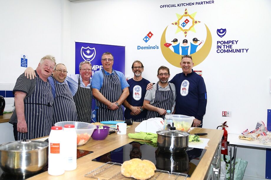 In Portsmouth, members of the community take part in a Mens Kitchen learn to cook scheme along with Portsmouth Ambassador, Alan Knight MBE