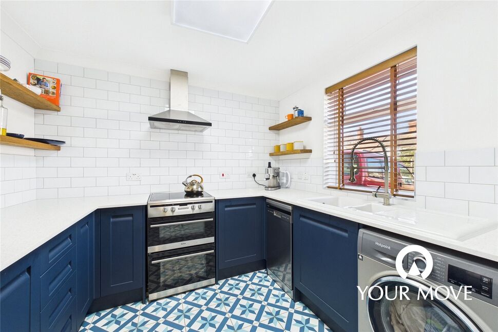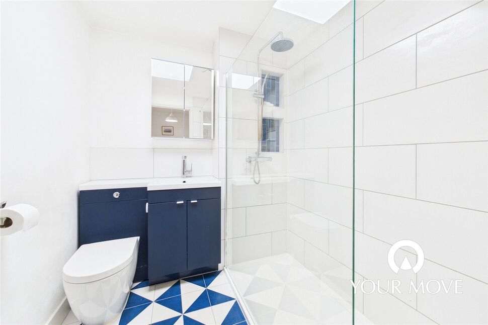 You enter the property from the composite door into a brightly decorated contemporary hallway with downstairs WC and under stair storage. To the right is a sophisticated kitchen with ceramic sink and pull-down hose and has space for four appliances. The sociable bright living room has space for a dining table and chairs and soft seating with a rear access door onto the garden, seamlessly combining the inside and out on warmer months. Upstairs off the landing is two generous double bedrooms, one with built in storage. The modern opulent shower room has a close coupled WC and vanity basin and a large walk in shower.