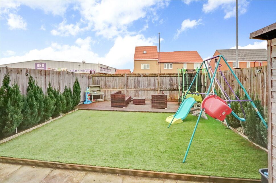 The front gardens are mainly dedicated to off-street parking with a double width driveway which is further complemented by unallocated parking just across the road. The enclosed rear gardens are well landscaped and include a patio, artificial turf and a useful timber garden store.