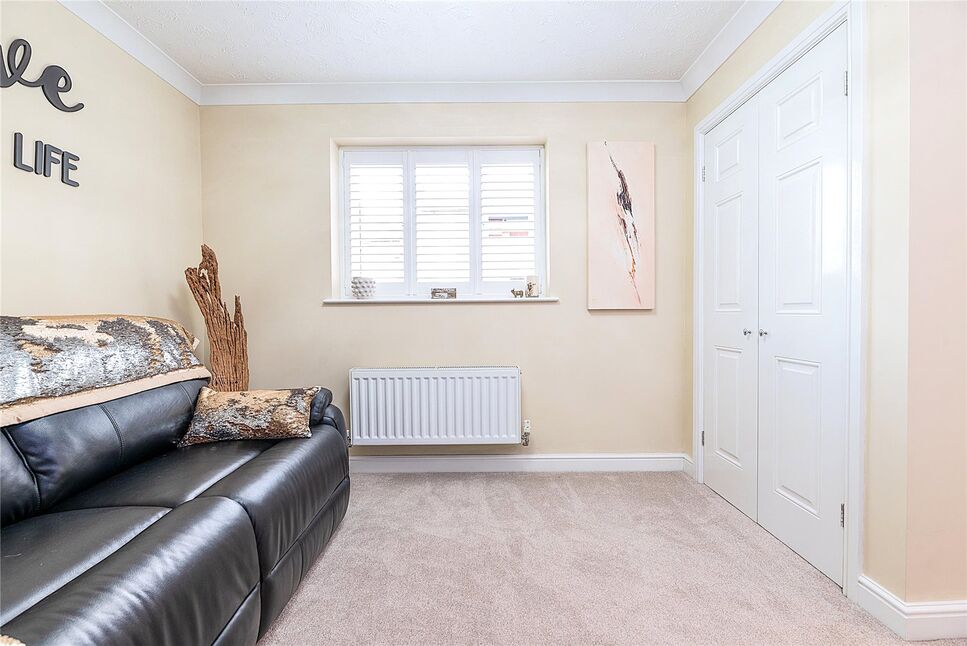 Double bedroom having fitted wardrobes, radiator and a double glazed window to the front aspect.