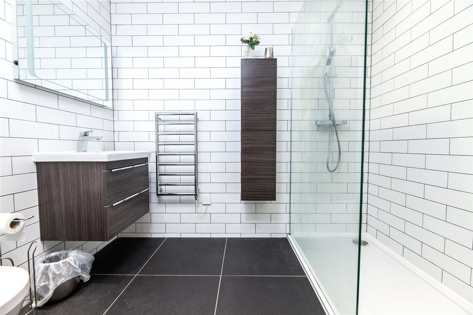 Comprising of a modern three piece suite that includes a low level wc, hand wash basin with useful storage below and double shower cubicle with mains fed shower. The room is finished with contemporary tiling to walls and floor and has a heated towel rail.