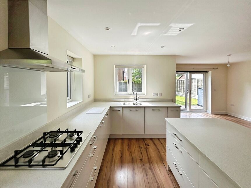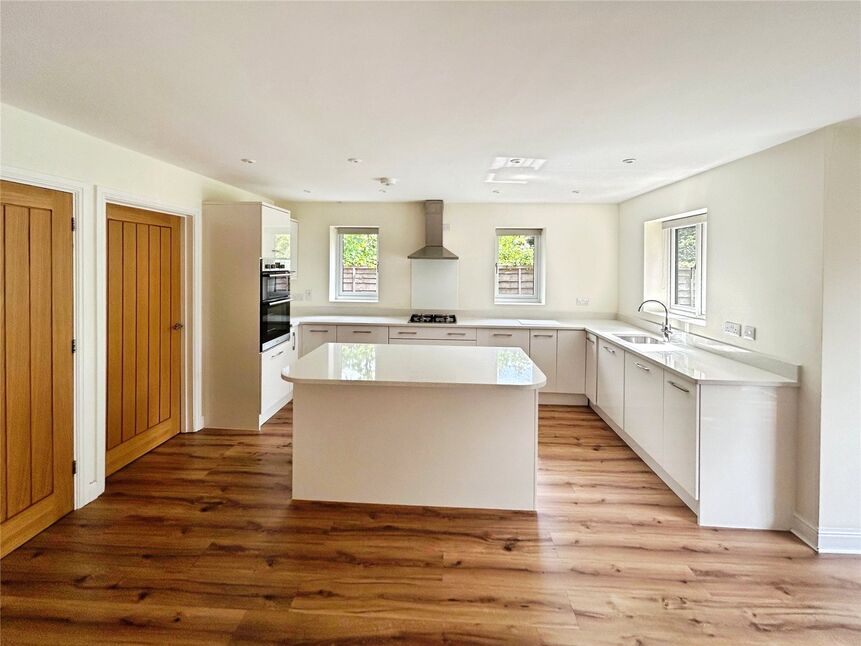 The open-plan kitchen is a real highlight, filled with natural light, and features a handy utility room. This space truly forms the heart of the home, perfect for both cooking and socialising.