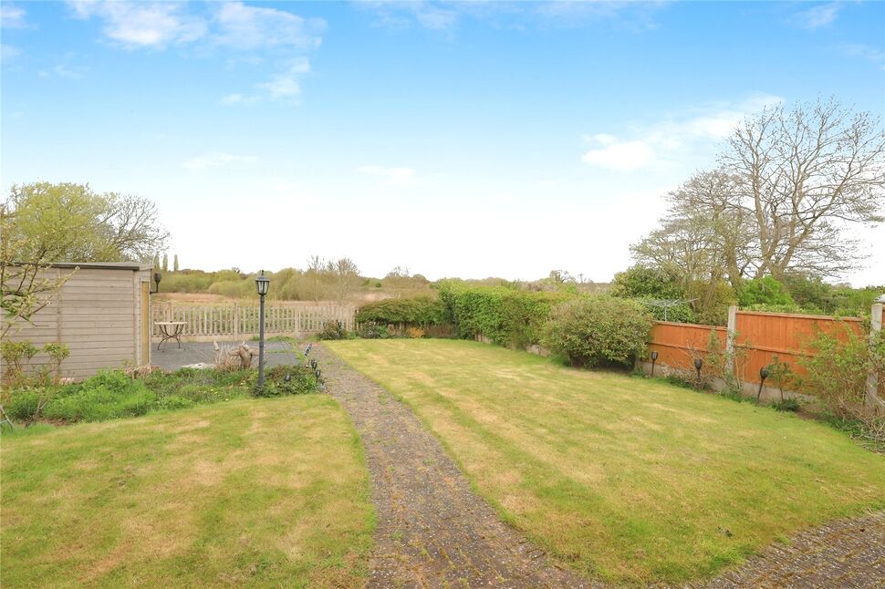 There is a lovely rear garden, well landscaped with a store and a summer house, and affording extensive views to the rear. There is a patio seating area behind the bungalow, a large lawn with central pathway with various borders, leading to a further patio, by the summerhouse, looking over the fields.