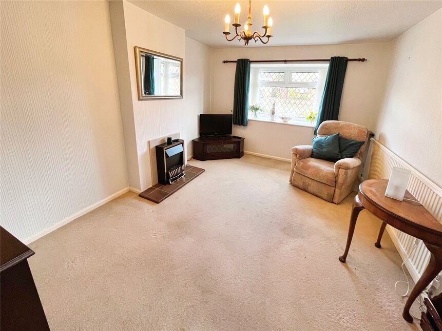 Fitted with a feature fire place and living flame electric living flame fire, radiator and double glazed window to front elevation.