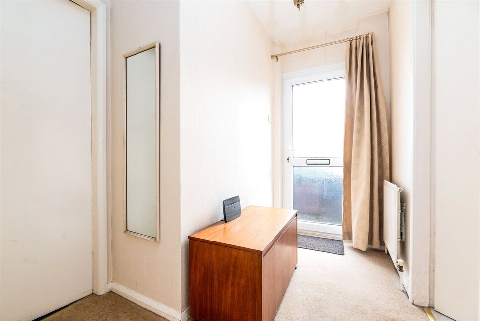 Accessed via a double glazed door, with features including a radiator and loft access hatch.