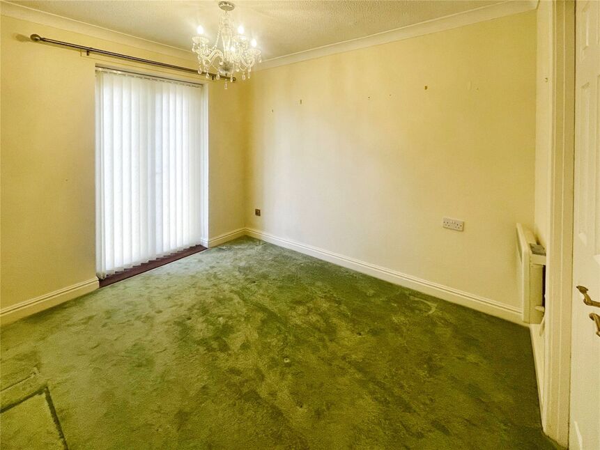 Storage heater, wall light points, coved ceiling and double glazed French window to rear garden.