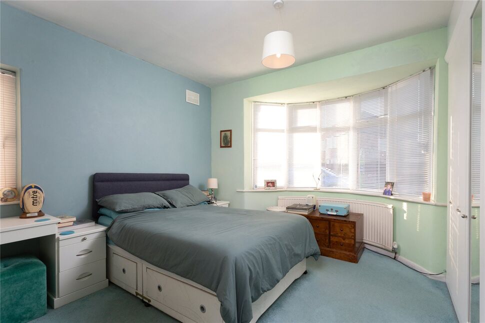 There are two double bedrooms at the front which both have curved bay windows, and one has fitted wardrobes and an ensuite shower room/WC. There is also a separate house bathroom/WC with a tiled floor and part tiled walls.
