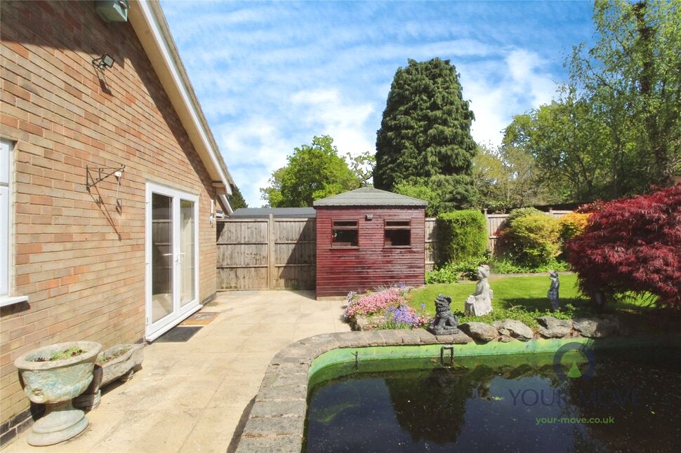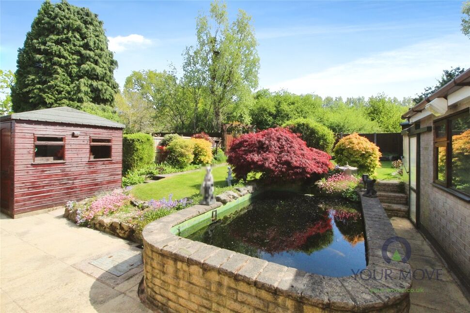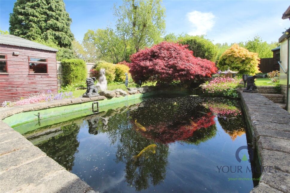 The beautifully maintained rear garden is a sight to behold, with mature trees, shrubs and plant beds. The koi carp pond, with a fully working pump system, is a unique feature that adds to the tranquillity of this outdoor space.