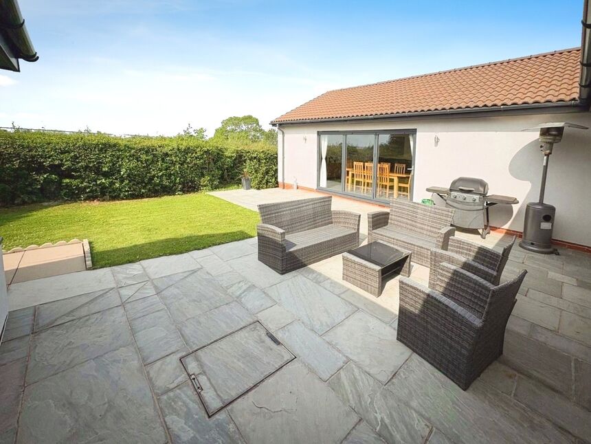 This bungalow offers three spacious bedrooms, master with a walk in wardrobe and en-suite, each one a sanctuary for rest and relaxation. The two bathrooms complete the accommodation, each providing a serene space to refresh and rejuvenate.