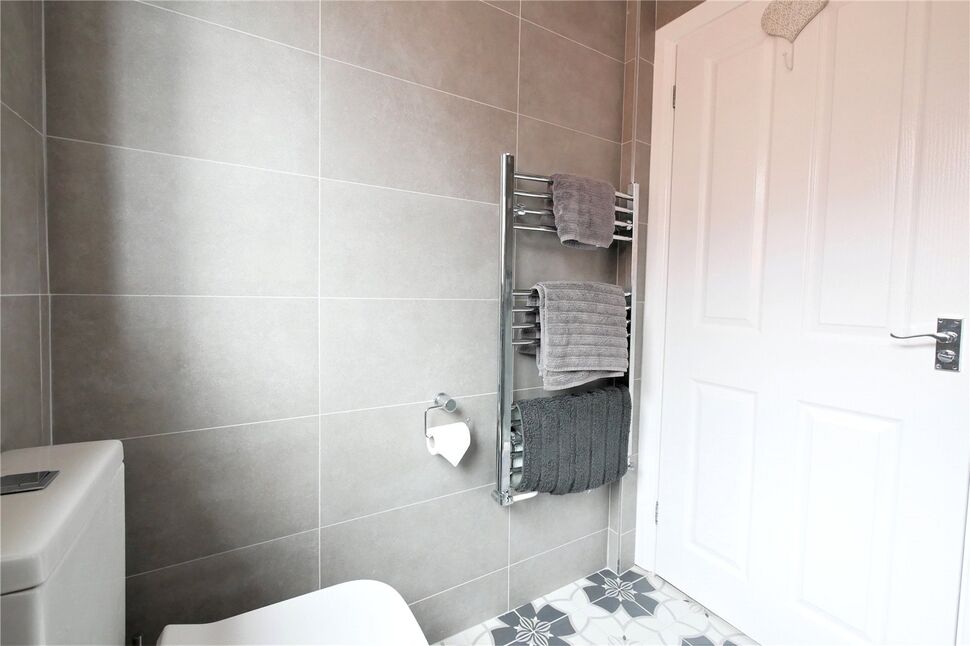 This modern shower room has a double glazed window to the side elevation and is fitted with a large shower unit, vanity wash hand basin and concealed flush W.C. There is a heated chrome towel rail and attractive ceramic tiling to the walls and floor.