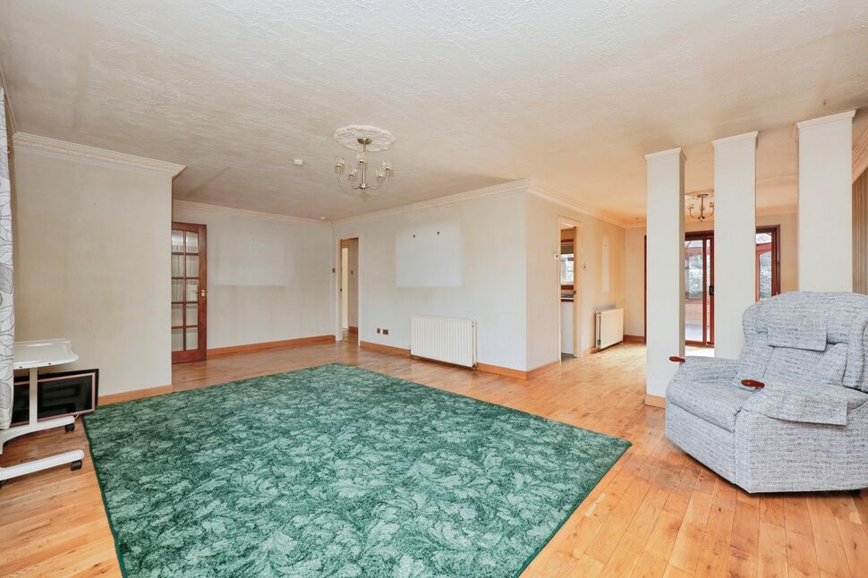 Large conservatory overlooking the garden – a great space to relax and unwind. Expansive enclosed garden, offering privacy and plenty of room for outdoor activities or landscaping. Double garage and driveway