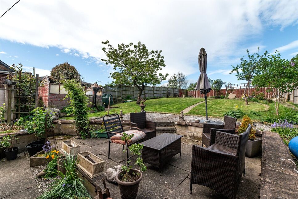 To the front of the property is a lawn garden with mature planting/hedgerow and a driveway providing off street parking for multiple vehicles. The expansive rear garden features two paved patio areas, pond, well maintained lawns, mature planting/trees and wooden storage shed.