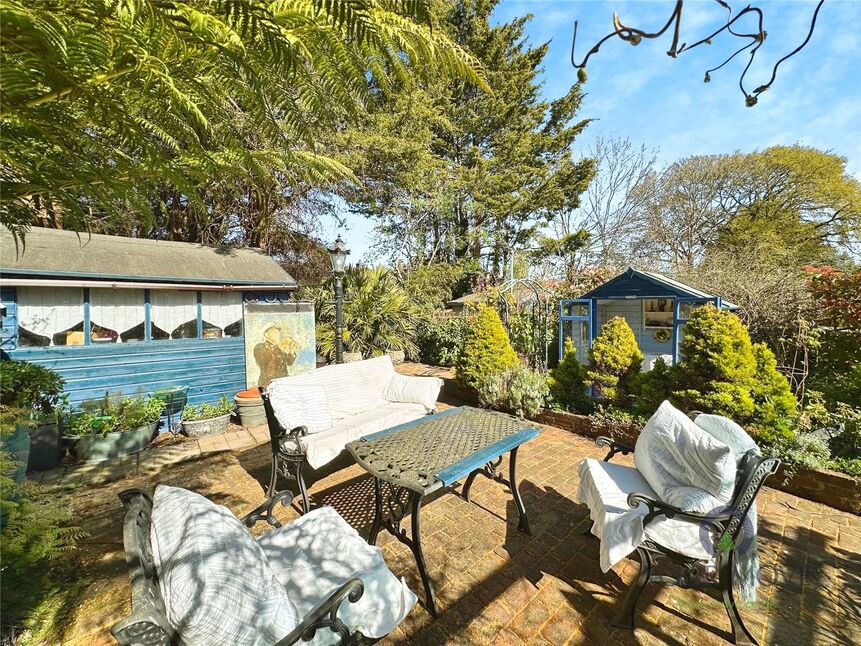 Externally, the property features multiple seating areas in the garden, perfect for entertaining, along with a detached outbuilding with power, ideal for storage or a workshop. A car port with electricity and additional off-road parking add to the home’s practicality.