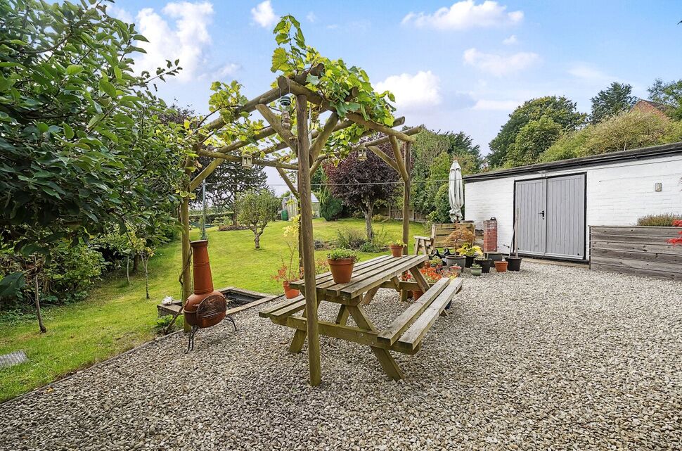 The heart of this home is undoubtedly the fantastic and well-equipped kitchen, which features an island and an abundance of natural light. This space flows seamlessly into the dining room, with byfold doors opening onto the stunning rear garden. The outdoor area is a highlight of this residence, boasting a 130 ft long garden that overlooks stunning open countryside and a scenic vineyard. This lush space is a botanist's dream, home to a plethora of mature trees, fruit trees, and shrubs. A variety of established plants dot the landscape, along with a thriving vine and vegetable patch.