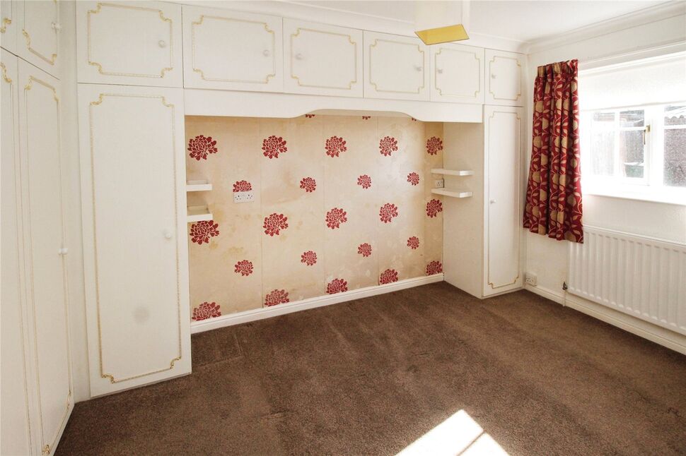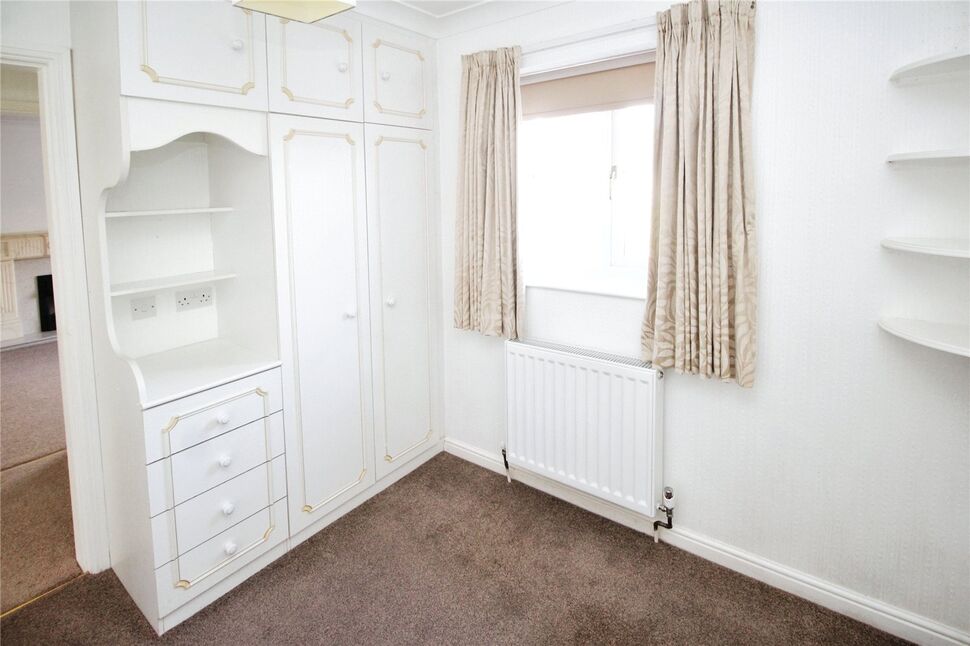 Having rear facing double glazed window, range of built in wardrobes with storage cupboards over the bed recess, coving to ceiling and a central heating radiator.
