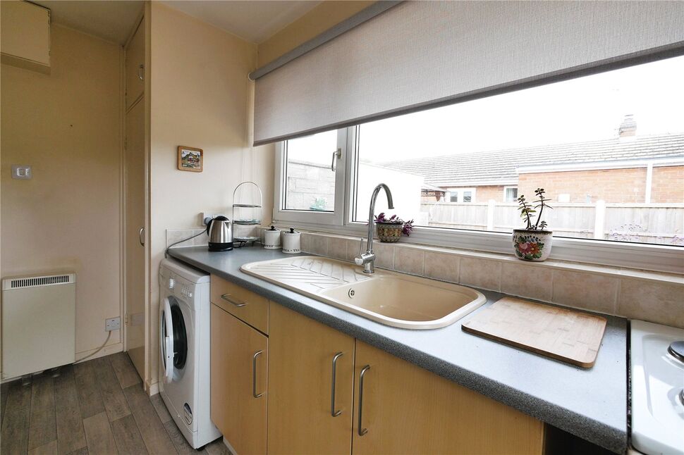 With dual aspect double glazed windows and a range of base and wall kitchen units with contrasting work surfaces and an inset sink with mixer tap and tiled splash backs. There is an electric cooker point, built in larder and airing cupboard, plumbing and space for an automatic washing machine.