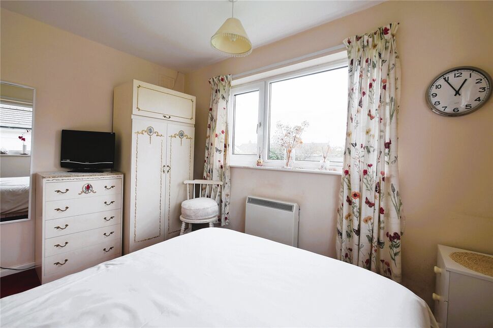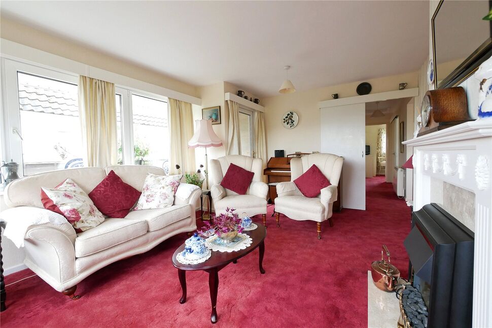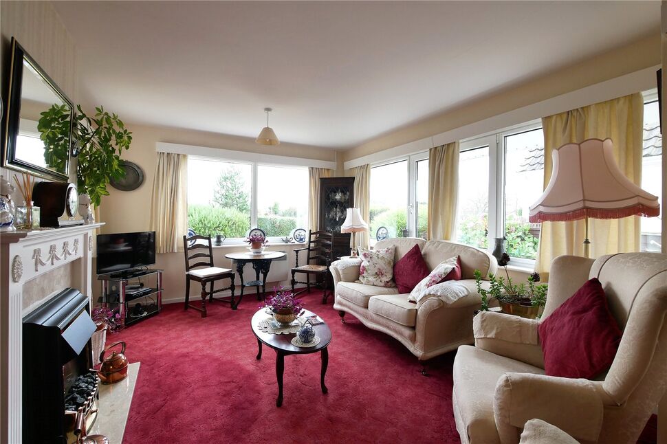Triple aspect double glazed windows make this a light and bright room. There is an external door leading to the side garden, an electric storage heater, a panel heater and a feature electric flame effect fire with surround and hearth.