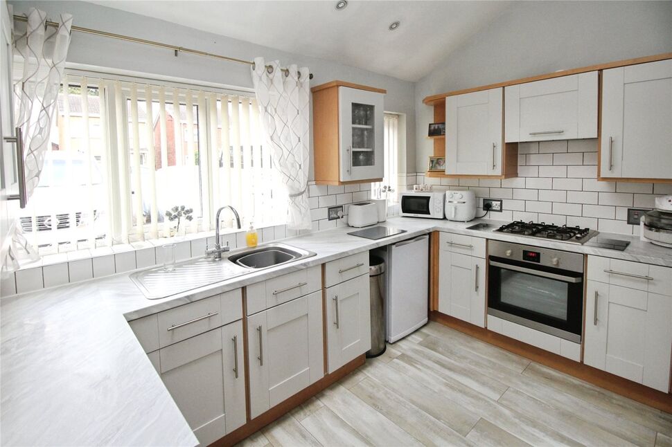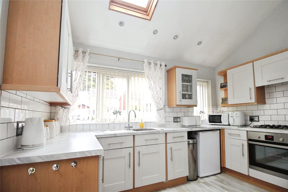 Having two front facing double glazed windows, with a good range of fitted units work top surfaces inset stainless steel sink & drainer and mixer taps. Integral appliances include four ring gas hob with extractor over, single electric oven and dishwasher. Feature ceiling with skylight window, part tiling to walls and open to.