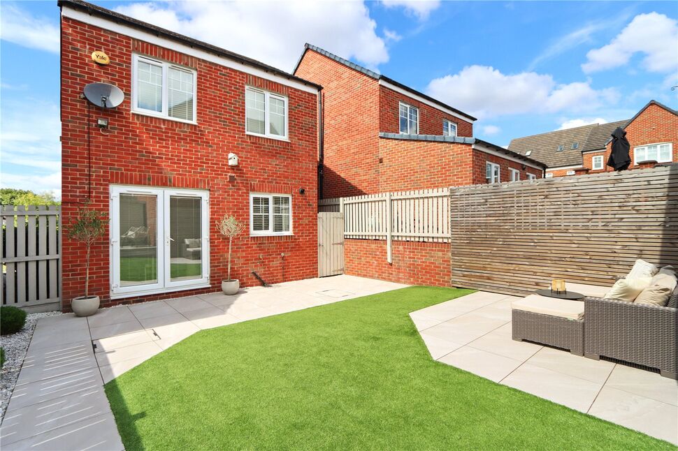 Externally, the rear garden has been designed for easy maintenance, featuring quality astroturf, two separate patio areas, and a small decking section, a fantastic space for outdoor dining or entertaining. It also includes a parking space for one car and plenty of visitor parking to the rear.