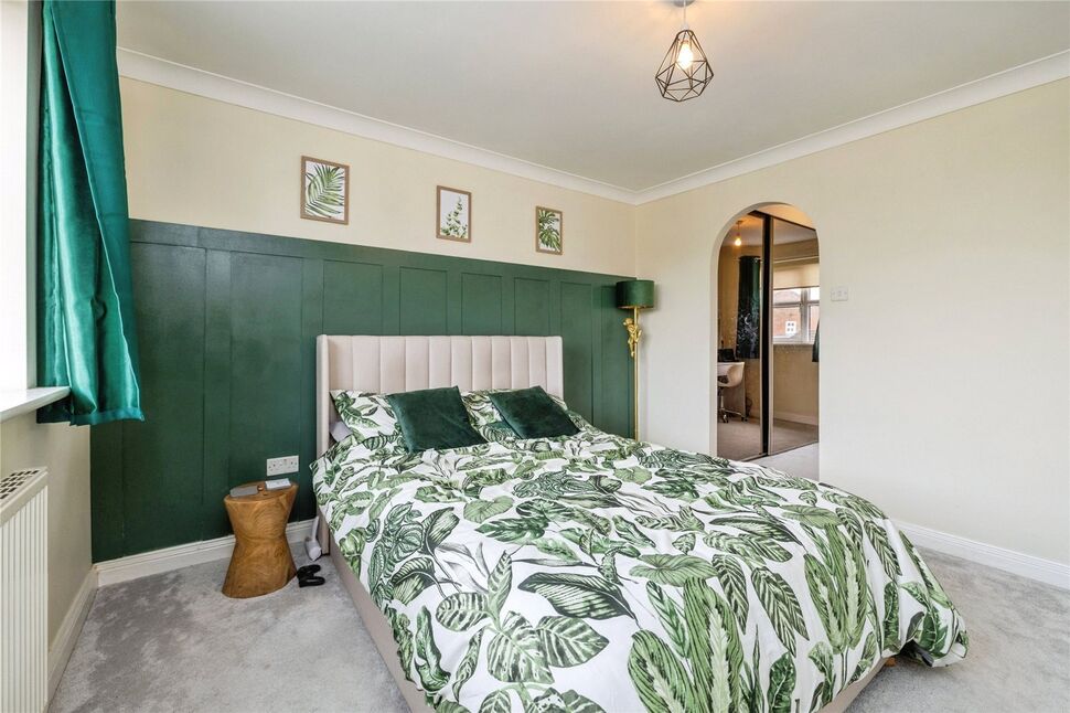Generously sized fourth bedroom comprising a panelled feature wall, carpet flooring, radiator and a double glazed window to the rear aspect.