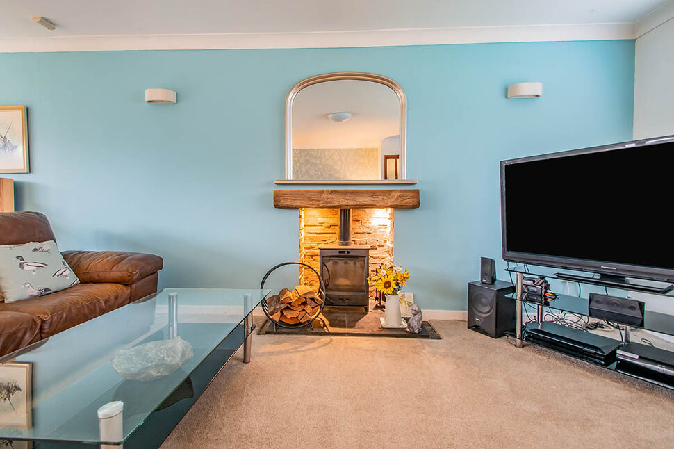 Solid fuel fire with feature surround, radiator, uPvc double glazed window to the front elevation.