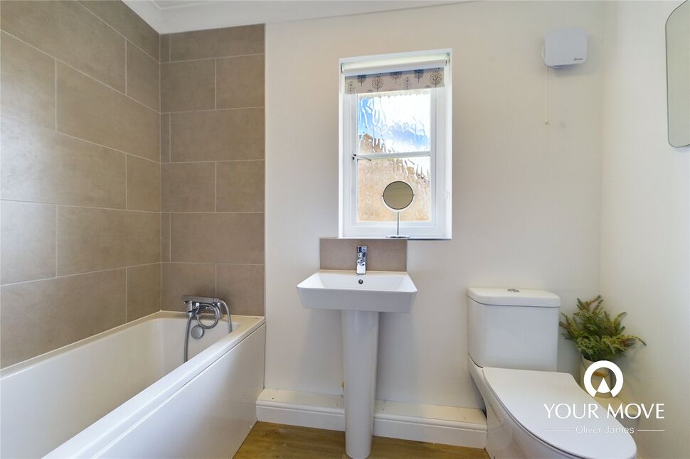 Gaining additional space over the integral garage, the first floor feels overly generous and offers a bright feeling landing with airing cupboard. Three of the four bedrooms are generous doubles and enjoy fitted storage, with the fourth an ideal office or nursery. The large master features it’s own modern en-suite shower, with a family bathroom serving the other three.