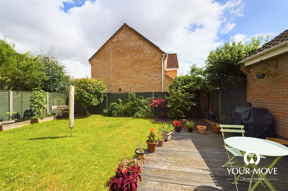 Complete with a double width driveway and a private feeling garden (rarely available for a modern development home), the property is entered via an to entrance hall enjoying easy maintenance laminate flooring throughout the entire ground floor. There is an essential cloakroom WC, and understairs storage with the sizeable sitting room to your right; enjoying a walk in bay window and double doors into the dining room. The dining room offers patio doors out onto a decking area and is situated next to the kitchen for ease of use. Featuring a modern range of units and ample work surface area, the kitchen features a ceramic one and a half sink, integrated oven with four ring gas hob, integrated dishwasher and space for an American style fridge-freezer. Further storage, a fitted sink and space for a washer and dryer is found in the adjoining utility room.