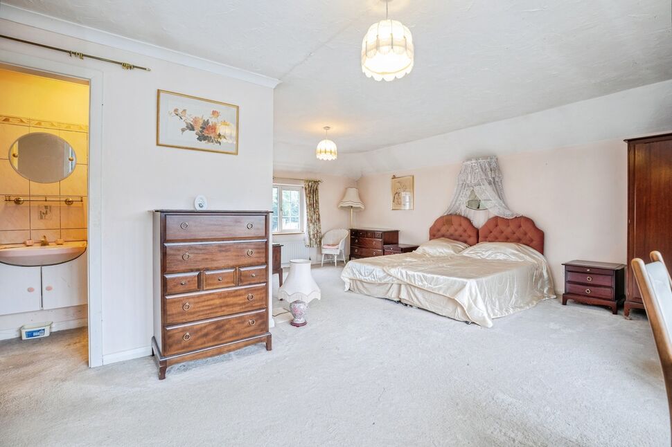 To the first floor the substantial main bedroom benefits from its own en-suite, alongside three further double bedrooms and family bathroom. In addition, a versatile studio annexe with kitchen offers excellent potential—whether to accommodate extended family, or integrate into the main house creating further bedroom, with additional en-suite.
