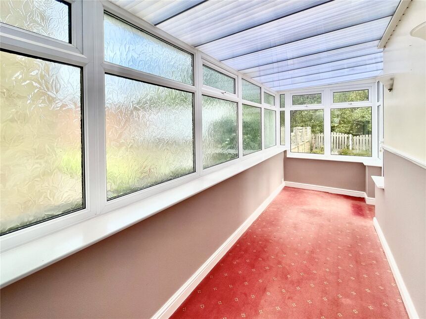 A conservatory sits to the side and rear of the property with a front facing entrance door and rear rear facing door opens onto the garden.