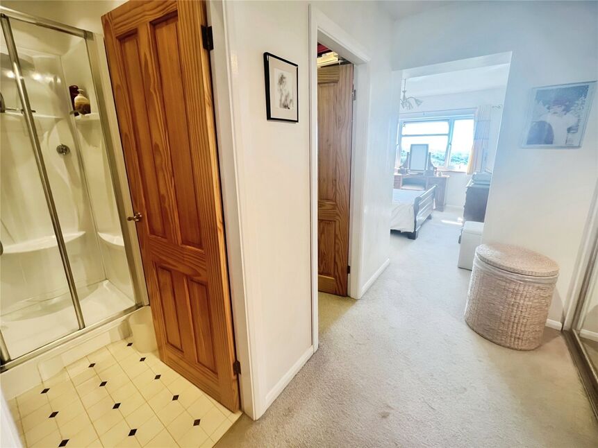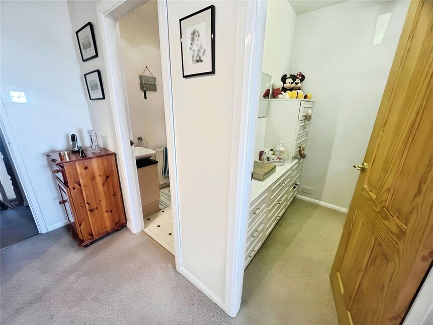 The property boasts four bedrooms, with the main bedroom offering the luxury of a walk-in dressing room and en-suite facilities. An additional highlight is the extension to the second bedroom which is accessible from the third bedroom, offering a unique layout that adds to its charm.