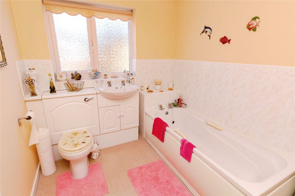 Featuring a three piece suite comprising of panel bath, low level w/c and wash hand basin.
