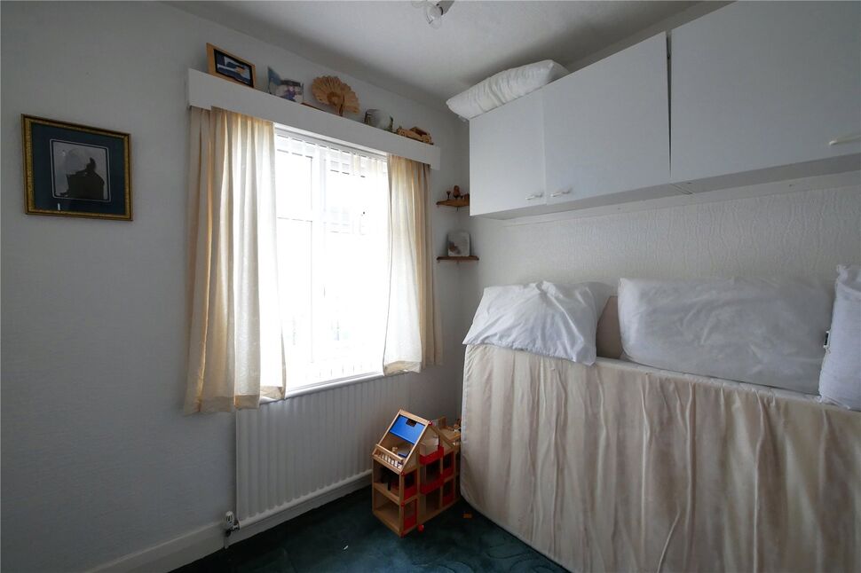 With a walk in double glazed bay window to the front elevation, a radiator and built in three sliding door wardrobe with rails and shelving.