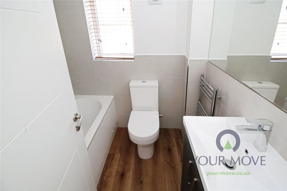 This immaculate three bedroom family home is brand new inside and it offers you a big spec inside, with smart modern flooring, blinds and heated towel rails. Tucked away in a quiet position, just across the road from a nice big green with a park and a basketball cage for your children or pets to play in. Whilst being within walking distance to Bedford's hospital, town centre and station. Perfect for hospital working families commuters or town centre dwellers! This dream home is ready to move into and it offers you a welcoming hall with a modern refitted cloakroom. There is a spacious 17ft x 14ft living room and a smart modern 14ft refitted kitchen/dining room with built in appliances and French doors leading out onto your garden. Upstairs, you’ll find a light and airy landing giving access to three bedrooms and a modern refitted contemporary styled family bathroom suite. Whilst your main bedroom boasts of having a luxurious refitted ensuite shower room and useful wardrobe recess. Outside, the property has a great size garden plot, which is laid to lawn with a patio, has space for a shed and gated side access. To the front of the property you have a small garden area with access to a 17ft x 8ft garage with a driveway in front. Further off road parking provided on a first come, first served basis within the residents parking bays provided. Council Tax Band D and we are awaiting the EPC.