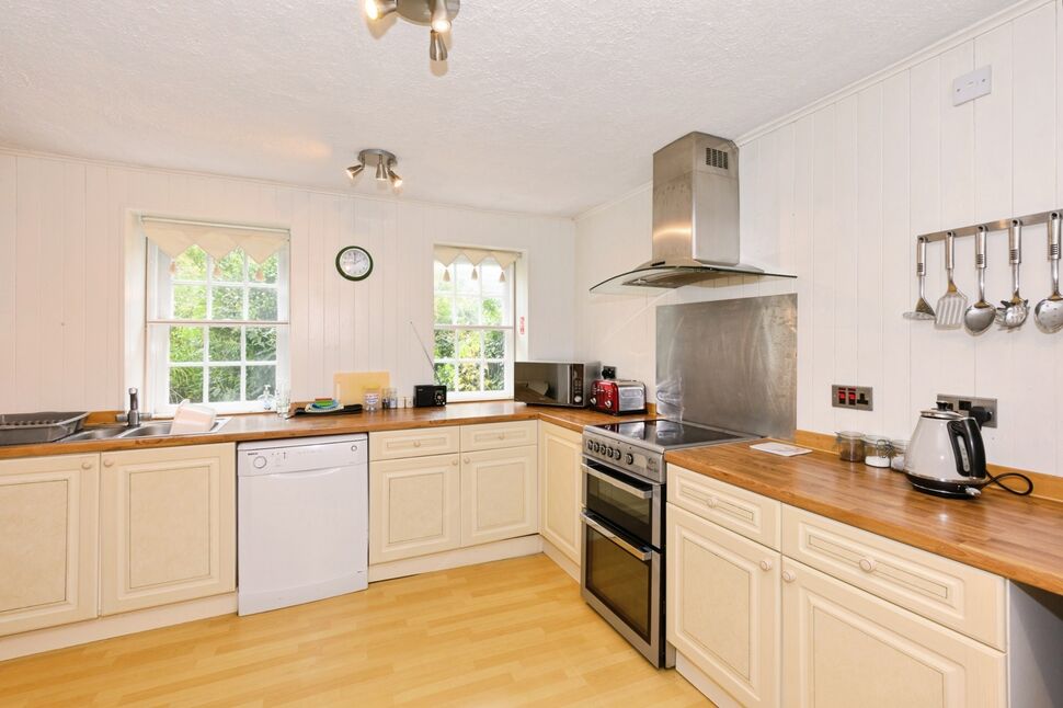 Good size kitchen/breakfast room with a range of fitted units and electric cooker.