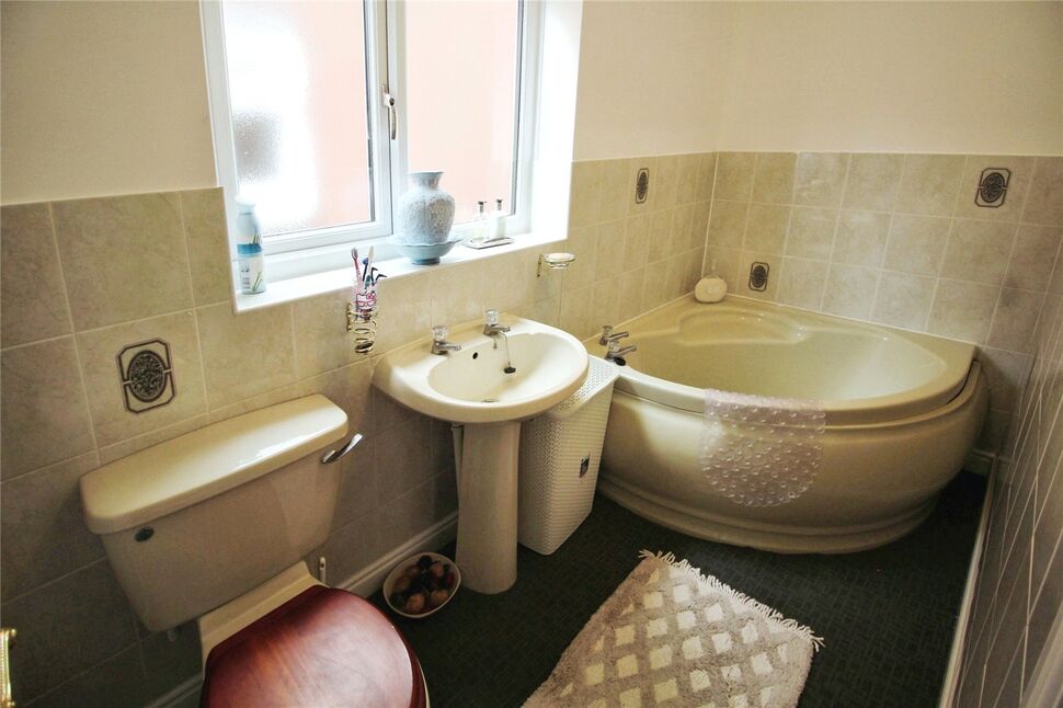 The property features a kitchen with a generous dining area, perfect for family meals or entertaining guests. The two bathrooms in the house are well-appointed, one with a corner bath, the other being the en-suite attached to the master bedroom.