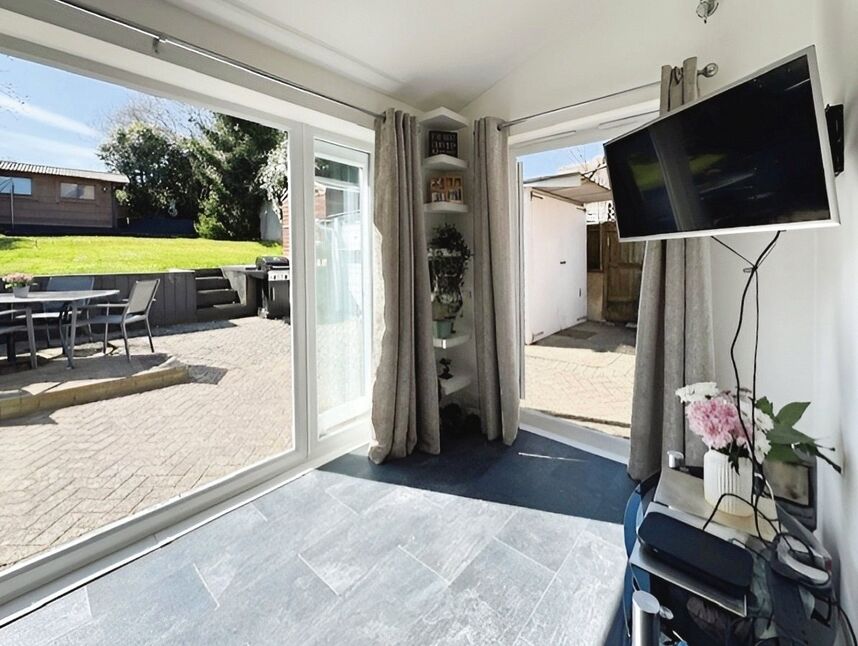 ***GUIDE PRICE £500,000 - £525,000*** This attractive detached house enjoys deceptively spacious accommodation having been extended and now boasts a versatile and well presented layout some great internal features that include a large social open plan kitchen/diner and externally a great south facing rear garden with cabin. In principle the property. The enclosed entrance leads into a hallway with useful storage, having a large under stairs cupboards and a further space for hanging coats. Door leads into an appealing sitting room which is found to the front, this is well appointed room that is made larger with a wide bay window and is complimented by an attractive central fireplace. The downstairs shower room is accessed via the hallway and is fitted with a white suite of wash basin, WC and large walk in shower and compliments the first floor ablutions. The light bright and spacious modern open plan kitchen/breakfast room socially interconnects into a dining area and leads into a rear reception space over looking the rear gardens. This part of the property is a real centre piece of the property and commands a light dual aspect and offers white gloss units and black laminate work surfaces, incorporating a large white ceramic sink, space for a dishwasher and wine fridge, and space for large range style electric oven and then generous space for dining table and chairs which also includes a range of units and space for a washer/dryer. The room opens out to a lovely rear reception area with views and access via double doors to the rear garden. Stairs rise to the first floor from the hallway and lead to three well appointed bedrooms and a bathroom w.c. To the front the principle bedroom is a generous size with a large fitted wardrobe. To the middle is bedroom three, a good size bedroom with a fitted wardrobe and the second bedroom is found to the rear offering an elevated view onto the rear garden. Currently accessed off bedrooms 2, the upstairs bathroom has a jacuzzi bath, WC and wash basin. With the necessary consents, there is certainly scope to adapt and create an additional bedroom if required or to change to alter the access to the family bathroom. Externally a driveway to the front provides off road parking for three cars. A timber gate to the side leads through to a private south facing rear garden. A large paved patio adjacent to the rear of the house leads up to a good sized lawn with plenty of space. At the far end of the garden, there is a large cabin with light and power which is real asset for working from home or hobbies and is flanked by a raised seating area. This really is a great garden for a family or a keen gardener. To the rear of the property there is also a large garage with lighting and power.