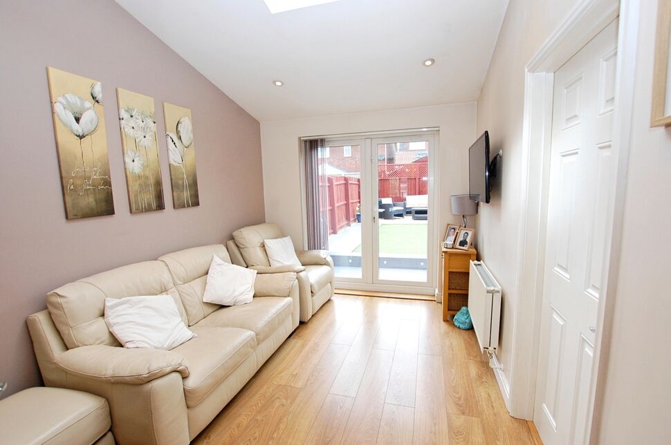 We are pleased to offer for sale this smartly presented, detached, extended family home which has been much improved by the current owners. The accommodation provides a sitting room/dining area which leads through an Oak framed bi fold door to an additional lounge with French doors to the rear garden. There is a good size, modern kitchen/breakfast room with integrated appliances and marble work surfaces, a wc and to the first floor three good size bedrooms and a modern family bathroom which is fitted with a four piece suite. The rear garden is easy to maintain and fully enclosed and the front garden provides off street parking for two vehicles. The home benefits from PVCu double glazed windows and doors, gas central heating and an integral garage. EPC Rating D