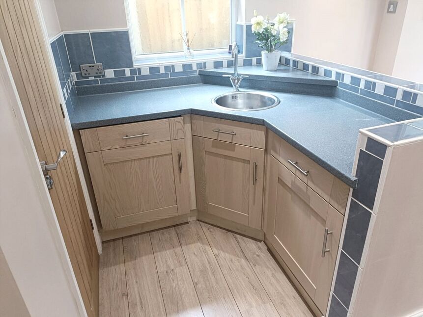 Open plan to garden room with load of natural light. Base units with integrated circular sink and built washing machine and tumble dryer. Double glazed window to side elevation and door to downstairs WC.
