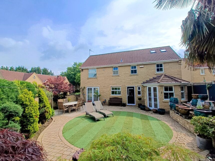 Beautifully established with feature circular Astro turf lawn. extensive block paved patio area with raised shrub borders. Enclosed and private with gated access to side elevation.