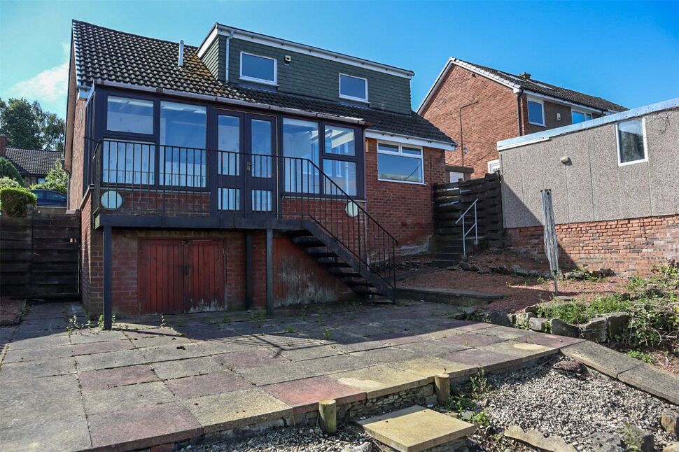 Sought after property type in a desired location, on the outskirts of the town. Offering flexible accommodation with two double bedrooms on the ground level and a third double bedroom with en-suite shower room upstairs. Fresh decor, requires floor coverings, a blank canvas to put your own stamp on. Driveway to side, leading to a detached single garage, offers ample off road parking. Terraced gardens to both the front and rear, low maintenance.