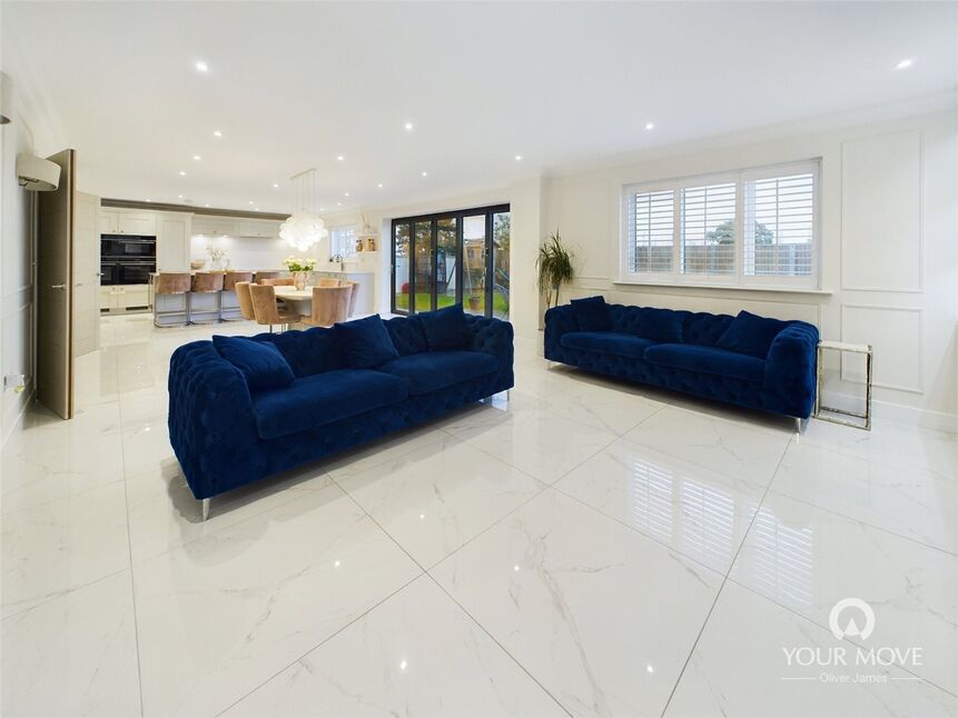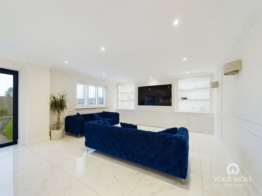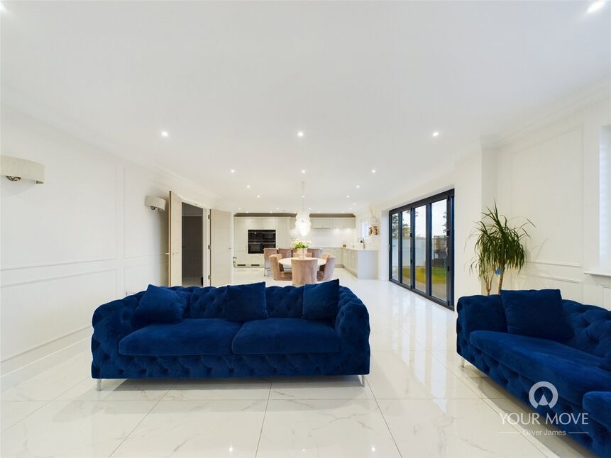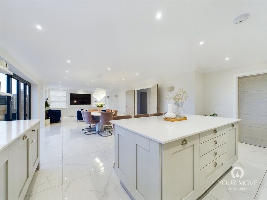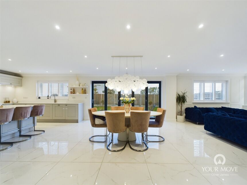 This is the "wow factor" of the house. A room measuring over 40ft in width, perfect for hosting. The vast space is split into three sections by the current owner and utilised as a kitchen, dining room and lounge spaces. Again, all boasting under floor heating via an air source heat pump, Luxury tiled flooring, and bi folding doors which open up onto the garden all help to provide that "executive feel".