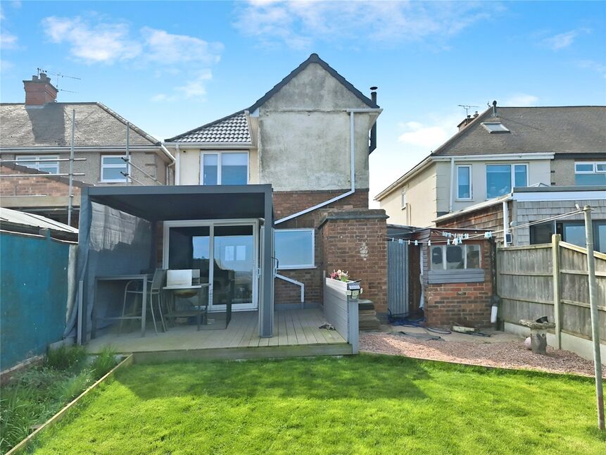 With Driveway to the Front and an Enclosed Rear Garden mainly laid to lawn with Decked Patio with Roof and Side Shuttering and Open Views to Rear.