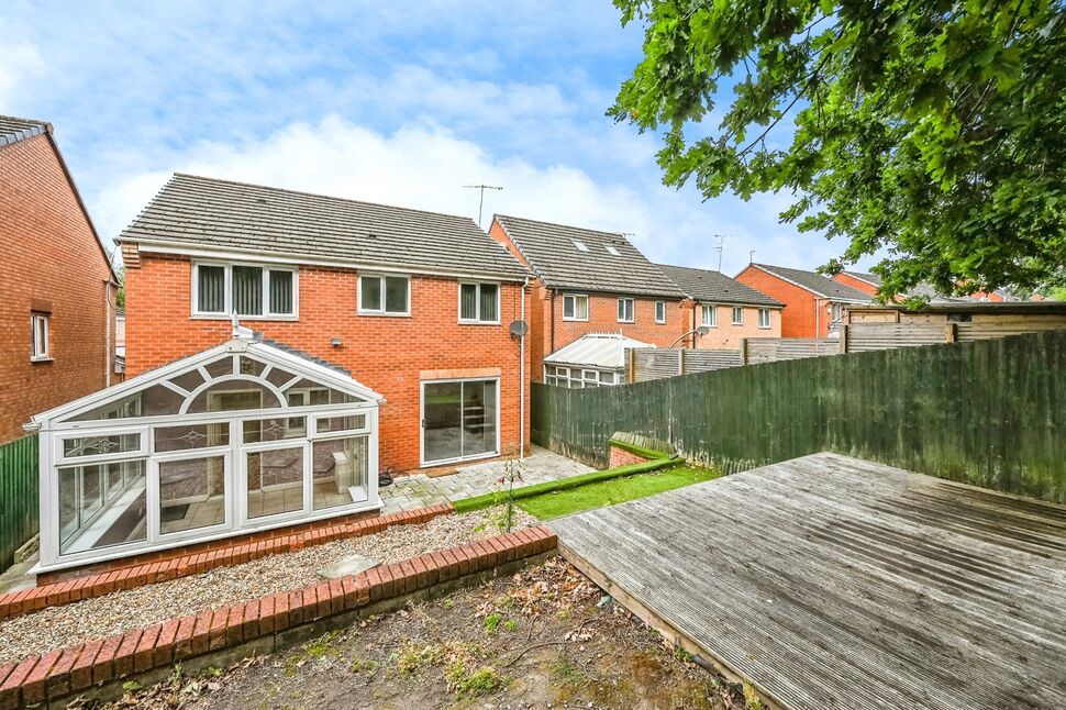 Located in a quiet residential estate with a turfed, terrace garden to the rear and sitting on a generous plot, this fantastic, well designed, detached family home boasts all the accommodation a larger property can offer a large family. The property has been finished to a good standard throughout offering contemporary accommodation set over two floors. The property gives easy access to a range of local amenities and schools, public transport links and is just a short drive to several major motorway networks. The accommodation briefly comprises of entrance hallway, cloak room W/C, lounge, kitchen, dining room, large conservatory. The kitchen boasts a superb range of wall, base and drawer units along with space for appliances with door access to the rear garden.. There is a lovely conservatory opening to the garden. To the first floor there is a landing leading to a large double bedroom with ensuite shower room w/c and 3 further beautifully decorated bedrooms. There is a, modern family bathroom W/C and great storage cupboards on the landing. Externally the property has a block pave driveway to the front providing off road parking. To the rear there is a lovely lawned garden ideal for the growing family made up of large lower patio area. EPC Grade C Tenure Freehold Council Tax Band C
