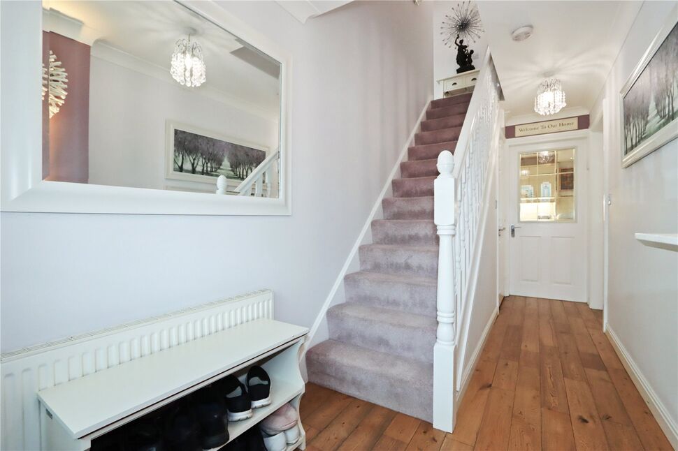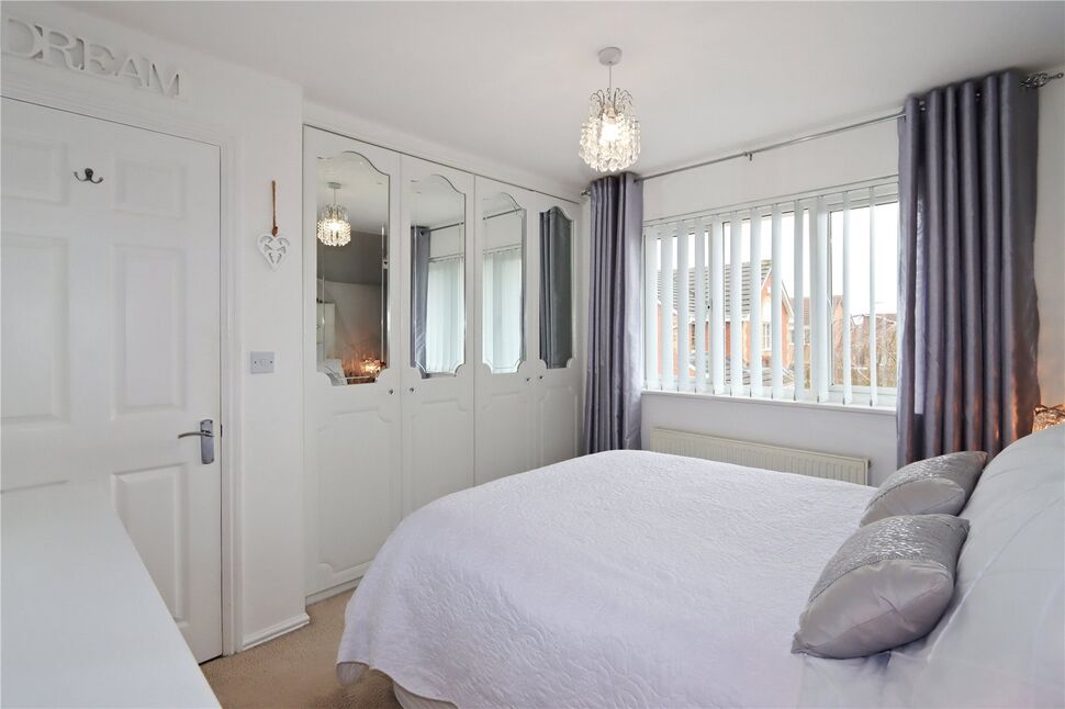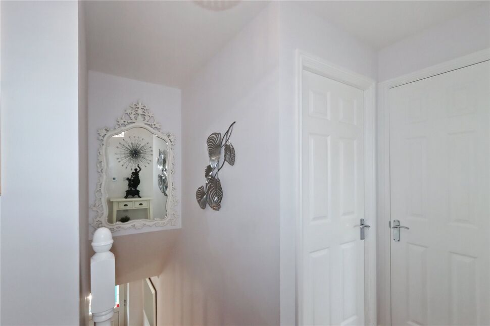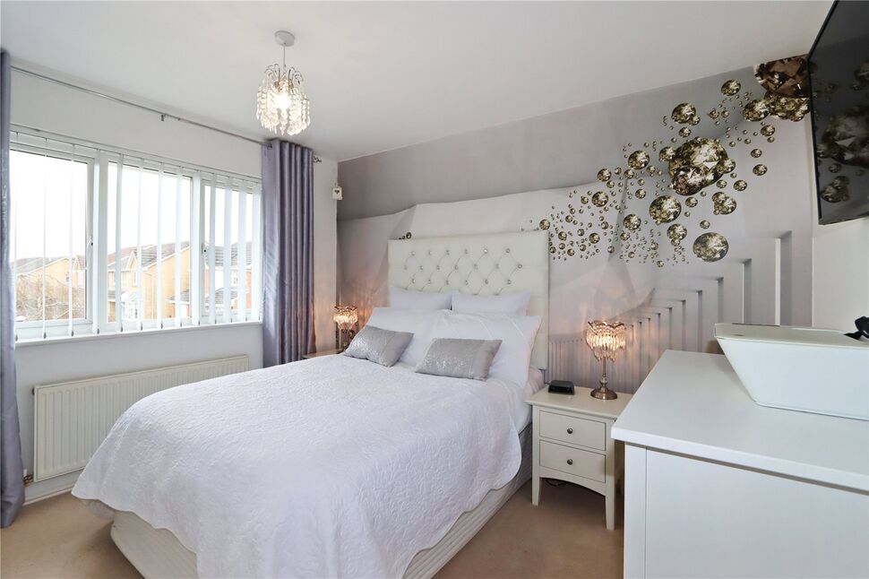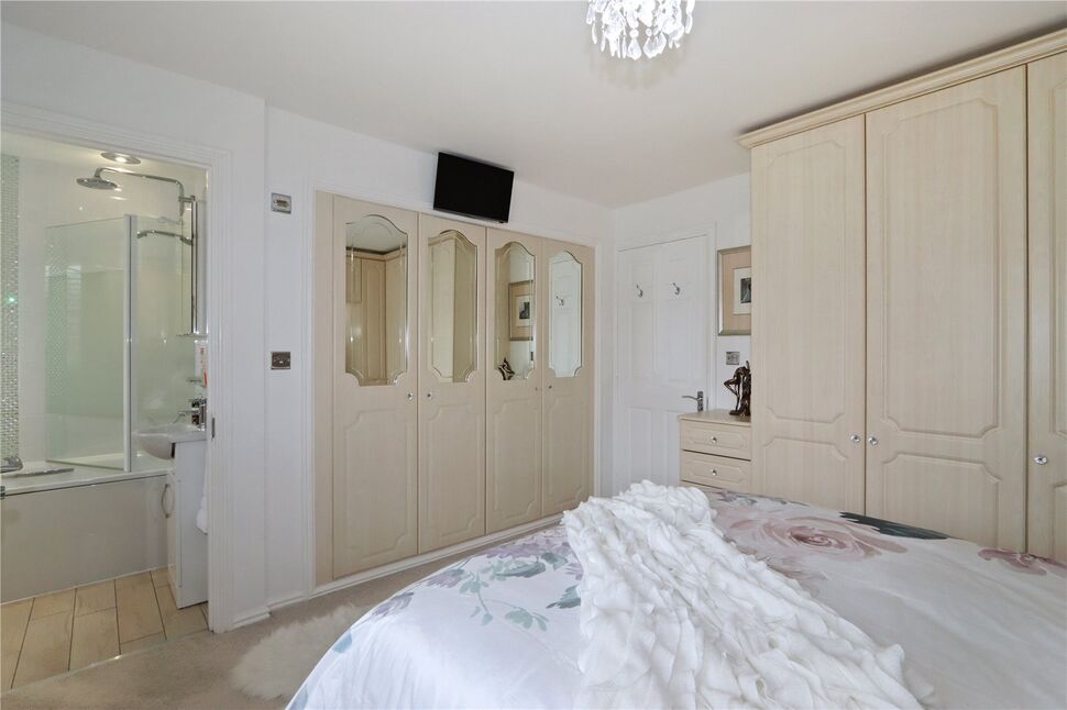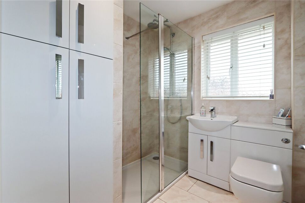 Upstairs, the accommodation continues to impress with a sleek, contemporary shower room, a generous master bedroom with built-in wardrobes and a private en suite bathroom, two further well-proportioned double bedrooms—each benefiting from built-in wardrobes—and a fourth bedroom, ideal as a single room or home office, complete with its own storage.