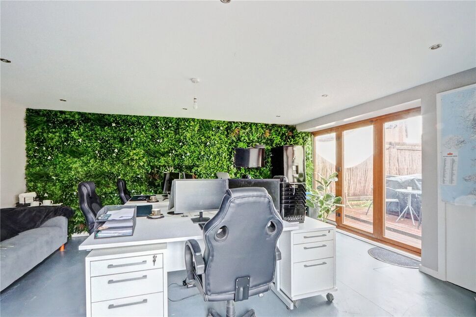 External steps lead to what is a converted double garage which now offers a Home Office/Studio.