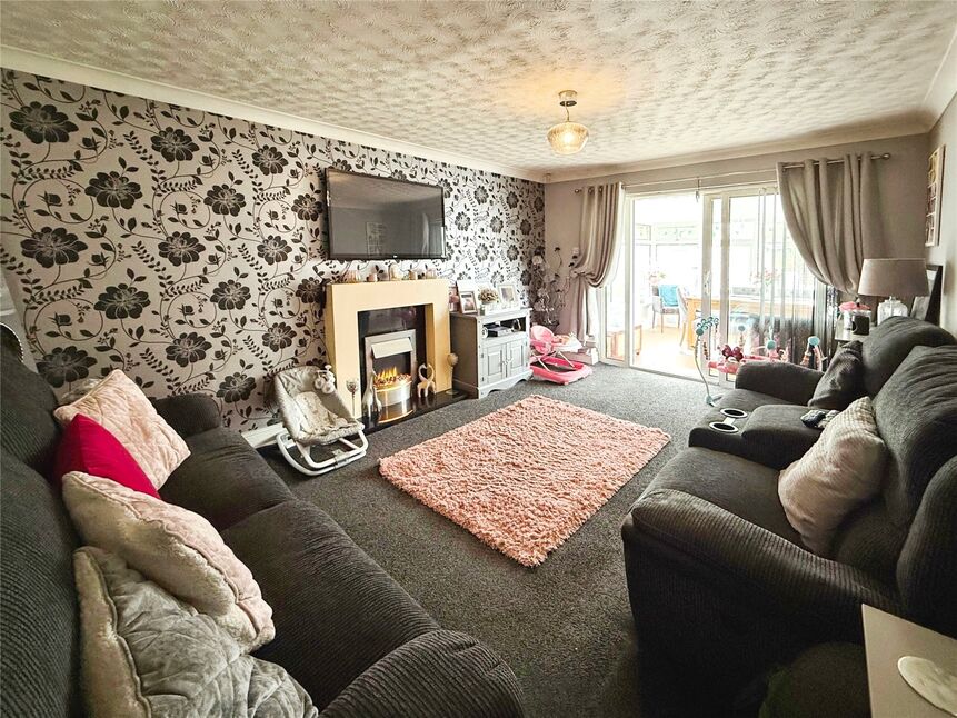 With carpet flooring, television aerial point, electric fire and feature surround and uPVC double glazed sliding doors to the rear leading to the sun room.