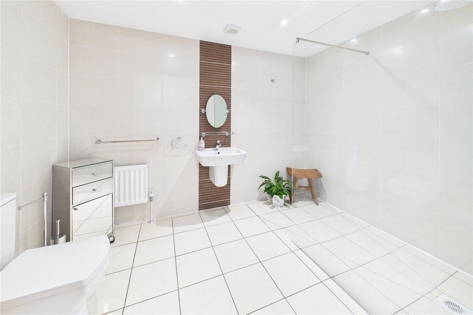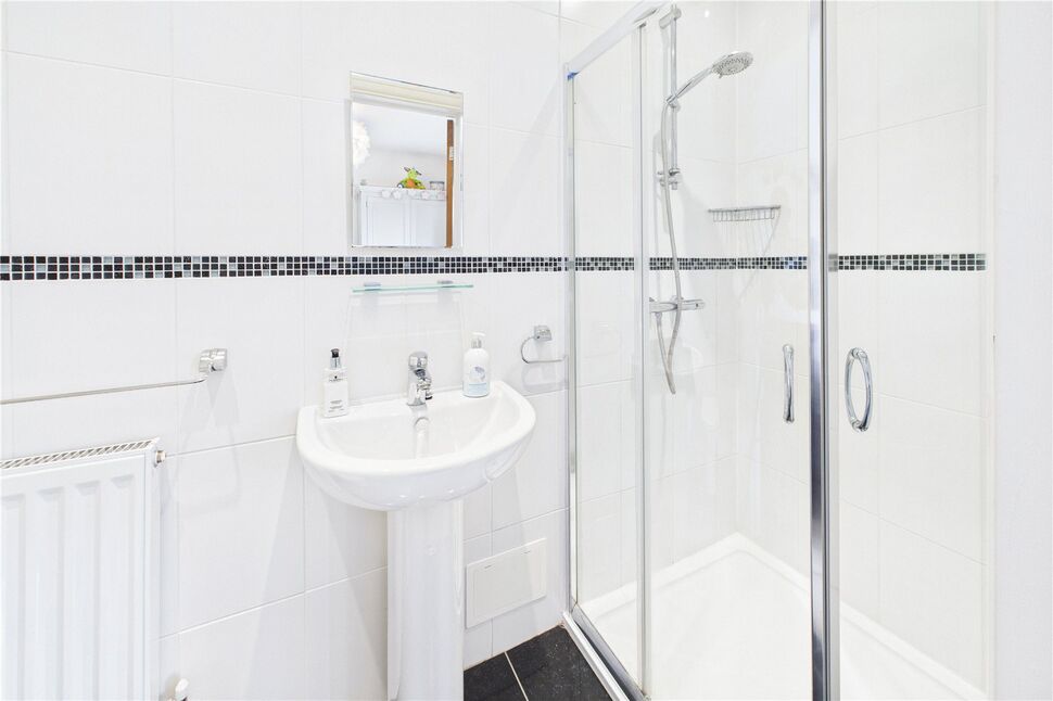 Walk in shower, wash hand basin, low level WC, shower screen, fully tiled walls and floor, extractor fan, double radiator, single radiator.