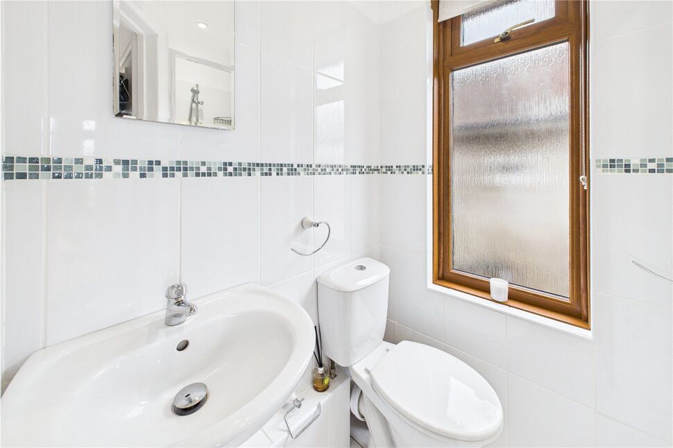 PVCu double glazed window to front, shower cubicle, low level WC, pedestal wash hand basin, fully tiled walls and floor, extractor fan.