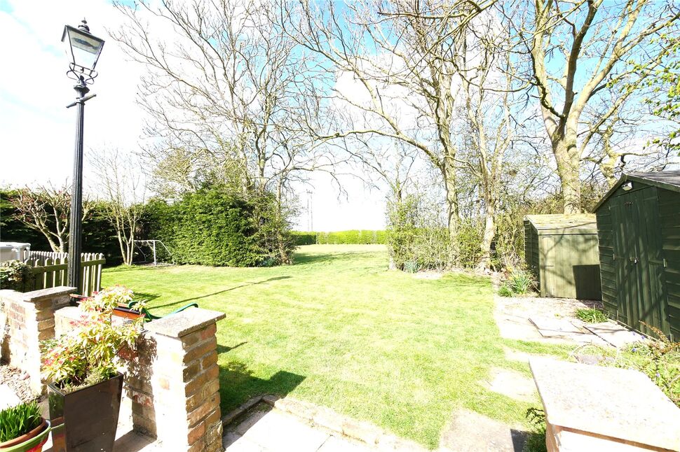 The front garden features a block-paved driveway and a pathway leading to the front door. It also includes a lawn area and a garage. Access to the rear garden, which spans approximately 3/4 of an acre and offers open views with trees and shrubs. The back garden boasts a spacious patio area & BBQ, outdoor lighting, an outside water tap, four timber sheds & septic tank.