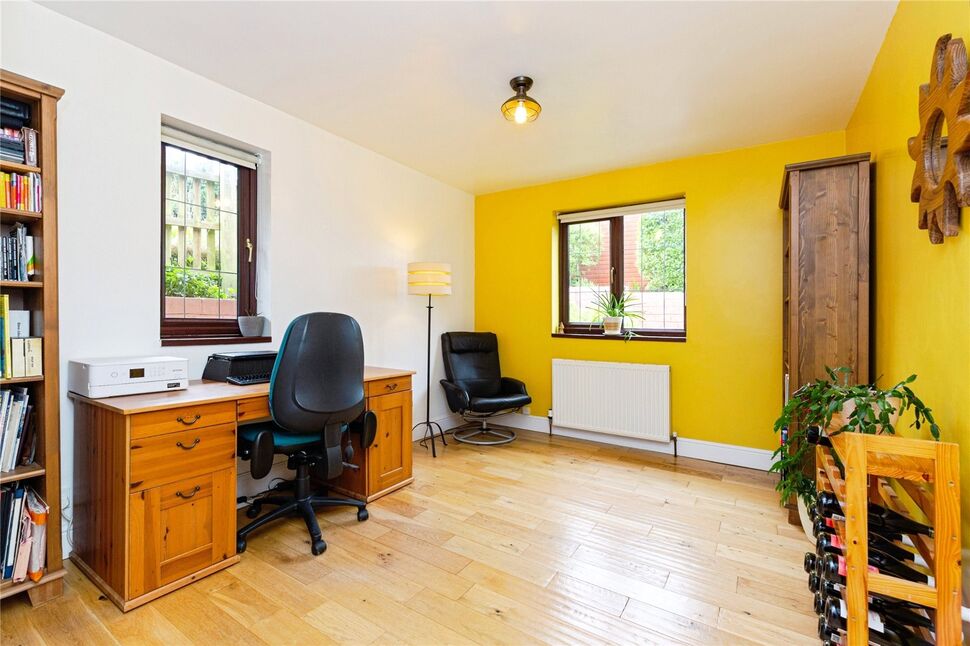 A versatile home office, which could easily serve as a fifth double bedroom or children’s playroom, is also located on the ground floor—ideal for guests or multi-generational living—complemented by a well-appointed family bathroom on the same level.